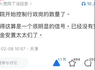 唐人日报5月20日讯:近日,有天津高校网友在知乎平台发帖称:“我们院开始控制行政岗位的数量了,我觉得这算是一个很明显的信号,(高校财政)已经没有空闲的资金安置太太们了。”该言论迅速引发热议,网友普遍认为,当前高校行政岗收紧趋势正在全国范围蔓延。