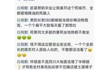唐人日报6月25日讯:近日,西南财经大学一名研一学生白雨默因在社交平台上发布极具争议的言论,引发网络广泛关注与争议。据多位网友曝光,白雨默不仅拿地震灾难开玩笑,还公然辱骂成都本地市民,言辞极为不当,激起大量网民愤怒。