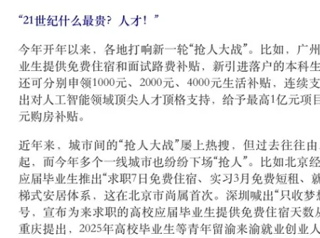 唐人日报6月11日讯:近日,广州、北京、西安、杭州等地纷纷推出新一轮“抢人大战”政策,争相为应届毕业生开出诱人条件。然而,在各地历史人才补贴尚未兑现、违约拖欠问题频发的背景下,这场“抢人秀”引发广泛质疑。