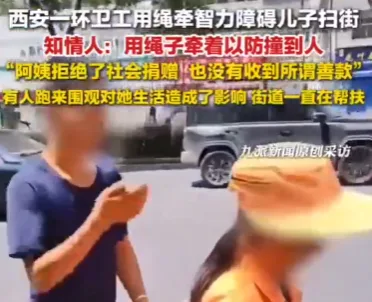 西安环卫工妈妈牵绳带智障儿扫街引泪目!拒收捐款反遭围观骚扰,被迫申请调岗