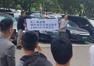 据现场照片显示,男子名为谢金鹏,其手持横幅写道:“本人谢金鹏,被阿里巴巴违法辞退,416,516.26元未支付。”他指控阿里巴巴在解除劳动合同过程中存在违法行为,并拖欠高额薪资。