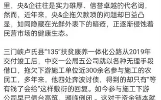 唐人日报6月13日讯:自2019年三门峡卢氏县“135”扶贫康养一体化公路项目竣工交付以来,施工主承包单位中交一公局五公司被曝长期拖欠下游施工单位工资,涉及农民工人数超过300人。六年来,这些为项目辛苦付出的工人不断奔波维权,却始终等不到兑现的薪酬。