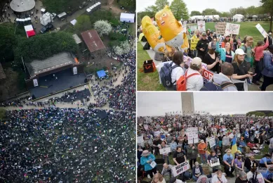 唐人日报4月6日讯:周六,数以万计的抗议者涌入华盛顿国家广场,响应全国“放手”行动,集体反对特朗普总统的新一轮关税政策与埃隆·马斯克推动的政府效率部预算削减措施。抗议由多家左翼组织如MoveOn.org和Indivisible发起,是特朗普自今年重返白宫以来最大规模的反对集会之一。