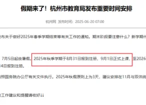 根据杭州市教育局发布的官方文件,2025年暑假自7月5日开始,全市中小学秋季学期应于8月31日报到注册,9月1日正式开课。然而,严州中学高三学生却在8月1日就重返课堂,这一整整提前了一个月的开学安排,让不少家长直呼“高考的压力真的来了”。