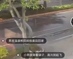 唐人日报9月3日讯:贵州一座普通县城的街头。昏暗路灯下,一对母子弯腰在垃圾桶旁翻找。年幼的孩子背着鼓鼓囊囊的编织袋,因拾到几只塑料瓶而兴奋小跑,笑声在夜风中回荡。母亲默默跟在后头,身影消瘦,沉默不语。灯光下的这一幕,被路人拍下传到网络,引发无数唏嘘。