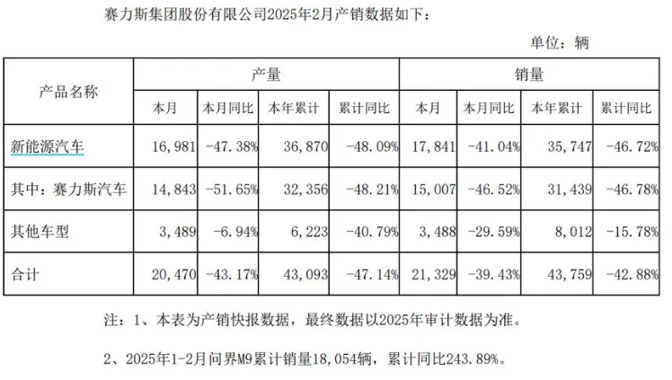 赛力斯新能源销量下滑