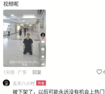 有网友留言写道:“他跪得不是政府,而是这畸形的工作制度。”“五天八小时是法定标准,不是奢求。”另一条热门评论则写道:“视频被删得越快,说明问题越真实。”
