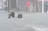 唐人日报7月30日讯:辽宁鞍山突遭暴雨,城区多地出现严重内涝,部分道路被洪水淹没,交通一度瘫痪。就在这样的极端天气下,仍有外卖骑手冒险在齐腰深的积水中前行,坚持为顾客送餐。