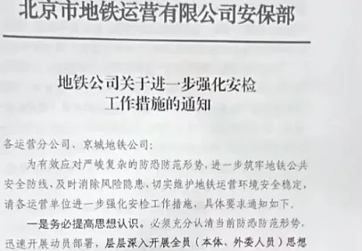 唐人日报5月14日讯:五一假期结束后,不少北京市民在社交平台反映地铁安检明显升级,排队时间加长、通勤效率受影响,引发广泛关注。5月12日,一名网友在小红书上曝光了一份来自北京地铁安保部的内部文件,内容直指当前安检加强的核心动因。