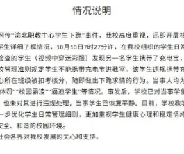 目前,渝北区教育局已介入了解情况,并要求学校进一步完善管理制度,优化学生自我管理机制。官方同时提醒社会公众理性看待网传视频,勿传播未经核实的信息,以免引发不必要的舆论伤害。