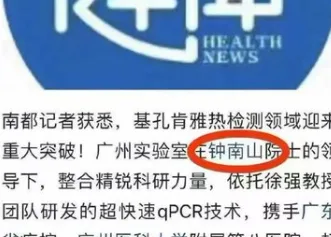 钟南山团队30分钟快筛基孔热检测盒刷屏!网友泪目:84岁还在守护我们