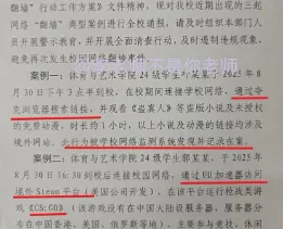 唐人日报9月5日讯:广西钦州幼儿师范高等专科学校发布通报,点名批评三名学生因“翻墙”访问境外网络而被查处的事件。通报中明确写道,一名学生因通过夸克浏览器翻墙阅读小说动漫被记录在案;另一名学生因使用UU加速器登录Steam平台玩《反恐精英》(CS)被检测发现;第三名学生则因在Steam平台更新游戏时连接到境外网站,被学校网络监控系统识别,最终三人均受到“通报批评”处分。