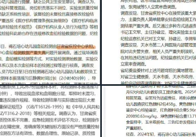 唐人日报7月22日讯:央视新闻发布关于“甘肃天水幼儿铅中毒事件”的调查报告,披露了令人震惊的真相:天水第二人民医院被确认篡改了儿童的血铅检测数据,甘肃省疾控中心则因使用不规范检测方法“压低”血铅数值,相关负责人已被立案调查。