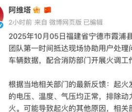 阿维塔方面在声明中表示,事件发生后,公司已派出应急小组连夜赶赴现场配合调查。初步勘验结果显示,车辆高压系统工作正常,动力电池舱无爆炸、无穿孔迹象,火源集中于副驾驶座椅附近区域。公司称将继续协助消防及第三方机构进行全面分析,以查明具体起火原因。