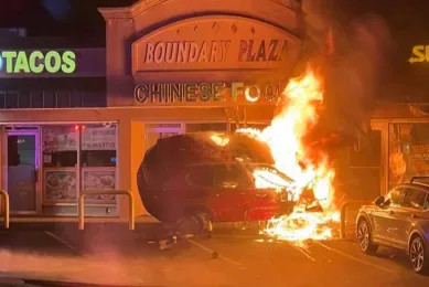 撞击后,SUV起火,火焰迅速吞噬餐馆门面,火势一度高过单层建筑。贝思佩奇消防局迅速赶到现场,将火势扑灭。现场照片显示,红色SUV侧倾倚靠在餐馆外墙,车辆前部被烧焦。