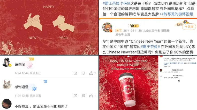 面对争议,霸王茶姬迅速删除了原帖子,并在新发布的帖子中改用了“Chinese New Year”。品牌对此事件进行了道歉,并表示将更加注重文化敏感性。