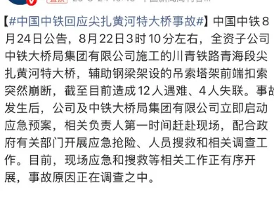 青海尖扎黄河大桥事故致12死4失踪!中铁通报“不影响业绩”引众怒