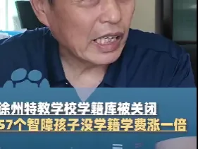 唐人日报9月9日讯:江苏徐州传出令人揪心的消息:一所办学几十年的特殊教育学校因被认定为“非学历教育”,学籍库被关闭,原本享有的义务教育经费也随之被停发,涉案金额高达409万元。这一决定直接导致57名智障孩子失去学籍,不仅失去了国家义务教育的经费保障,学费更是被迫上涨近一倍,令家长们倍感无助。