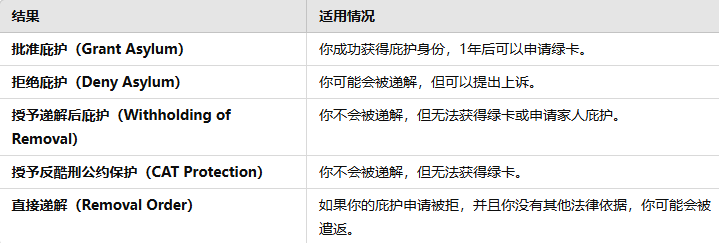 2. 庇护听证会的可能结果