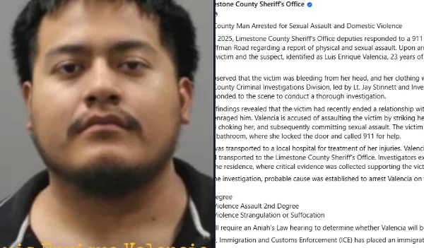 唐人日报4月29日讯:阿拉巴马州莱姆斯通县警方日前宣布,非法移民路易斯·恩里克·瓦伦西亚(Luis Enrique Valencia)因涉嫌强奸、家庭暴力袭击及家庭暴力勒颈等多项重罪被捕,目前已被移民局拘留。
