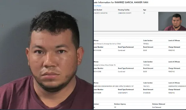 唐人日报4月15日讯:上周,爱荷华州约翰逊县执法部门逮捕了一名非法移民哈尼尔·伊万·拉米雷斯-加西亚(Haniel Ivan Ramirez-Garcia),他被控多项针对未成年人的严重罪行,包括试图引诱16岁以下儿童发生性行为、传播淫秽内容以及使用通信手段与未成年人交流不当信息。目前,拉米雷斯-加西亚已被美国移民与海关执法局(ICE)拘留。