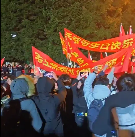 唐人日报2月15日讯:近日,湖南韶山毛主席铜像广场出现了印有“毛主席我们想念您!”字样的横幅。现场民众纷纷齐声喊道“毛主席万岁”,表达对毛泽东的怀念和敬仰。这一场景引发了周围游客和当地市民的关注。