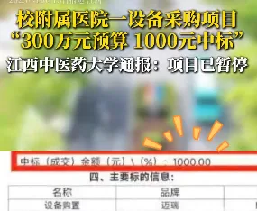 预算300万中标价1000元!江西中医药大学附属医院采购项目引质疑,校方介入调查