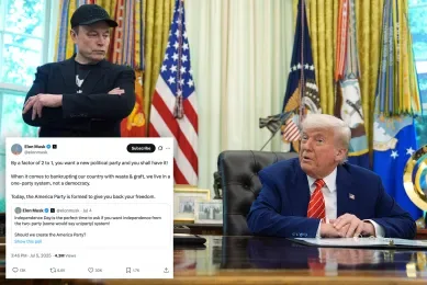 该声明源于马斯克发起的一项网络投票,结果显示在120万名投票者中,65.4%支持建立新政党。马斯克随后高调宣布“以2比1的比例,你们要一个新政党,你们就会得到它!”