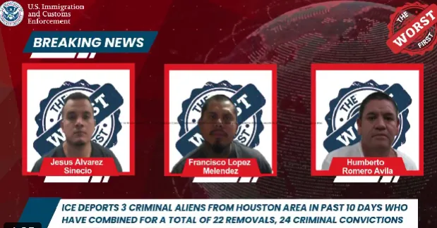 唐人日报2月21日讯:在特朗普总统的领导下,德克萨斯州休斯顿近日迎来了更安全的局面,因为三名非法移民在当地执法人员的行动下被成功捕获。值得注意的是,这三名嫌疑人共计被驱逐出境22次,并且曾因多项罪行被定罪24次。