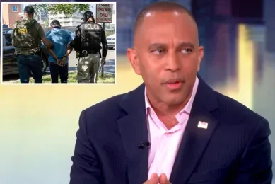 唐人日报7月8日讯:众议院少数党领袖哈基姆·杰弗里斯在《The View》节目中严厉抨击ICE执法方式,称该机构正“追捕守法的移民家庭”,甚至驱逐患病儿童和美国公民。他指出,这种做法与特朗普及共和党所宣称的“追捕暴力重罪犯”目标背道而驰,是对美国价值的背叛。