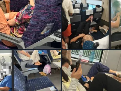 唐人日报7月29日讯:近日,一位小红书网友发布视频,曝光其在高铁旅途中记录到的多起不文明现象,引发网友广泛关注与讨论。视频中可见,有乘客将鞋子搁在小桌板上、吃完食物后留下残渣,还有人直接在桌板上剥虾、摆放脚部物品,严重影响其他乘客使用体验。