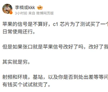 李楠的发言源于网友的一个常见调侃。长期以来,部分消费者对苹果手机的信号表现有所质疑,“信号不好”几乎成了社交平台上被不断重复的槽点。许多网友习惯性地将“信号改善”作为是否购买新机的理由。然而,李楠却在公开平台上以一句“说白了就是穷”作出回应,言辞犀利到近乎刻薄,直接将问题转化为消费能力与阶层讽刺。