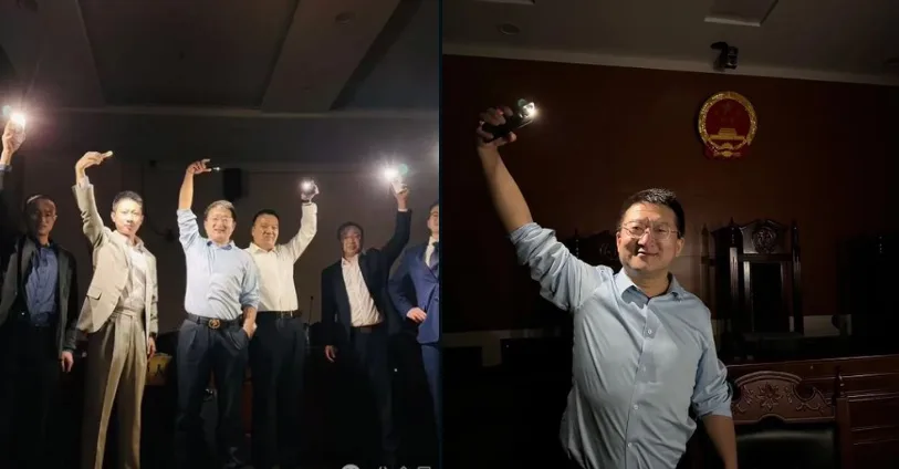 唐人日报11月14日讯:近日,鹤壁中院“许双军案”庭审中,两名辩护律师被法官强行退庭,两律师为捍卫辩护权拒绝退庭,法官直接宣布休庭。众律师担心两律师明天会被拦在法院门外,决定今天晚上不离开法庭,待明日继续开庭。法警强制关闭所有电源,律师们在鹤壁中院用手机照亮黑夜的法庭