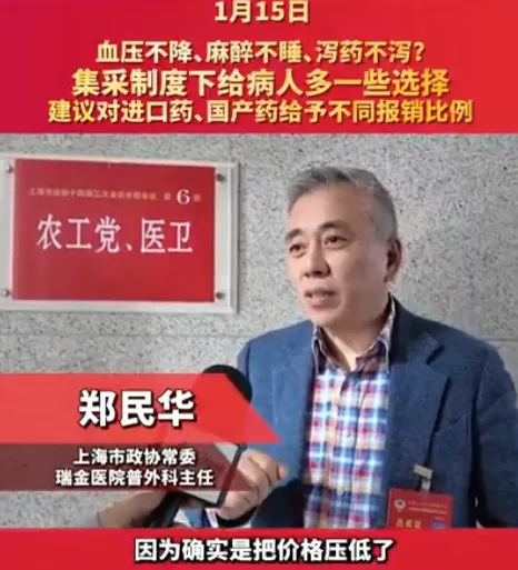 唐人日报1月18日讯:近日,瑞金医院普外科主任郑民华分享了自己父亲高血压药物换药后的情况。他的父亲长期服用原研药物,但最近更换为社区医院开具的药物后,血压迅速升高至180,郑民华称其父亲要求恢复旧药。