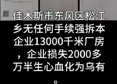 黑龙江佳木斯惊现“午夜强拆”!企业13000㎡厂房一夜被推平,损失超2000万