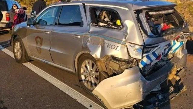 当时,这名科罗拉多州巡逻队(CSP)警员泰勒·阿特金斯(Tyler Atkins)坐在有标记的SUV内,突遭一辆轿车撞击,导致两辆车均严重损毁。
