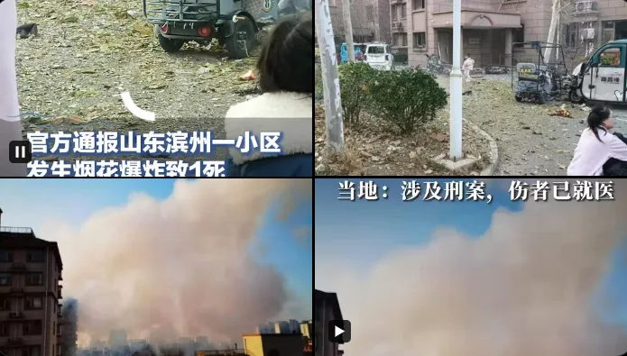 热门头条 1人死亡 滨州小区发生烟花爆炸案 0 唐人日报11月26日讯:近日山东滨州信达国际花园城小区内发生烟花爆炸,导致一人死亡。爆炸破坏一至七层窗玻璃,伴有白雾升空。警方称此为刑事案件。Continue ReadingPrevious “贫困学生”多次旅游 浙大取消资助资格Next “猪脚被偷,休息一天” 汕头商铺放假通知引热议 延伸阅读 热门头条 密密麻麻!福建一查扣点堆满电动车 网友:这得罚了多少人 0 热门头条 马路中间举锦旗“致谢”!上海美团骑手街头控诉报酬被克扣 0 热门头条 退市多年负债超两百亿,乐视网突然宣告要拿1.8亿元炒股 网友:为何不还债? 0 热门头条 陕西未完工自建房遭强拆 村民哭诉无家可归 0 热门头条 广东潮州沙溪镇突发工厂大火:火势迅猛冲天,黑烟压顶! 0 热门头条 像货车司机一样强制休!外卖新国标引热议 骑手怕收入缩水 0 发表回复 取消回复您的邮箱地址不会被公开。 必填项已用 * 标注评论 *显示名称 * 邮箱 * 网站 在此浏览器中保存我的显示名称、邮箱地址和网站地址,以便下次评论时使用。