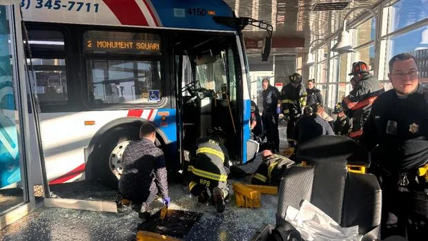 唐人日报11月15日讯:马萨诸塞州菲奇堡市一辆满载乘客的公交车撞入主街终点站玻璃墙,造成一名65岁男子重伤,多人受惊。