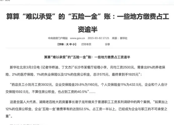 所谓“五险一金”,本是社会保障体系的重要组成部分,涵盖养老、医疗、失业、工伤、生育保险以及住房公积金。它的初衷无疑是善意的:让劳动者在退休、疾病、失业、住房等环节获得基本保障。然而,在现实中,却逐渐演变为压在劳动者肩上的沉重负担。那篇新华社的报道直言,有些行业和地区,企业与个人缴纳比例相加,几乎能把一个月的工资腰斩。工人拿到手的工资所剩无几,真正的收入缩水严重。