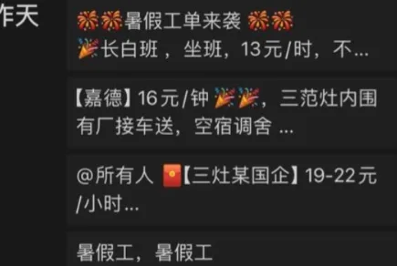 从公开信息来看,此次招聘主要面向学生群体,岗位集中在电子厂、物流分拣、包装流水线等劳动力密集型企业。多数岗位打出“包吃包住”“轻松上手”等宣传语,但实际薪资水平却大大低于不少地区当前的最低小时工资标准。