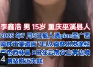 唐人日报7月25日讯:重庆巫溪。一则寻人信息在网络平台引发广泛关注。失联男孩李鑫浩年仅15岁,家属称其于7月7日被一名网友诱骗前往广西南宁,自那以后便失去联系,至今已过去十余天。