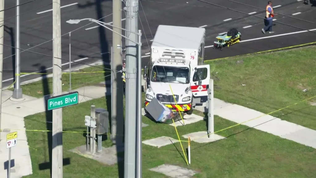 彭布罗克派恩斯警方发言人表示,事故发生时,救援车正在执行紧急任务,但轿车未按规定为救援车辆让路,导致碰撞。