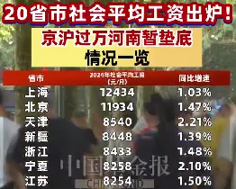 20省市社平工资公布:京沪过万,河南垫底,网友叹“一家三口都比不过”