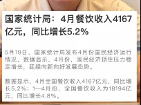 唐人日报5月21日讯:国家统计局近日公布数据显示,2025年4月全国餐饮收入达4167亿元,同比增长5.2%。然而,这一“增长”数据在社交平台上引发网民大量表情包嘲讽,指其“只看收入不谈亏损”、“消费数据看着热闹,底层餐饮却在冷风中挣扎”。