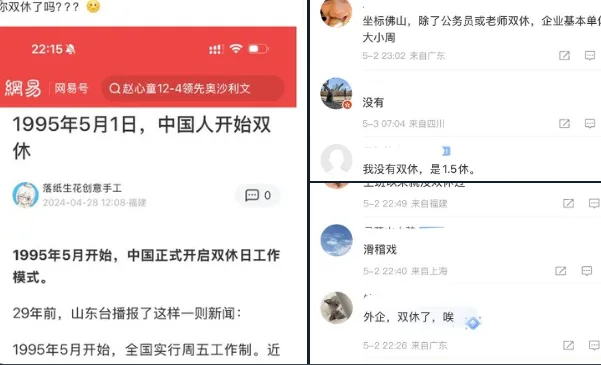 唐人日报5月7日讯:1995年5月1日,中国正式宣布实施双休制度,标志着每周五天工作制的全面推广。然而30年过去,所谓的“周末双休”至今在中国许多行业仍是奢望。