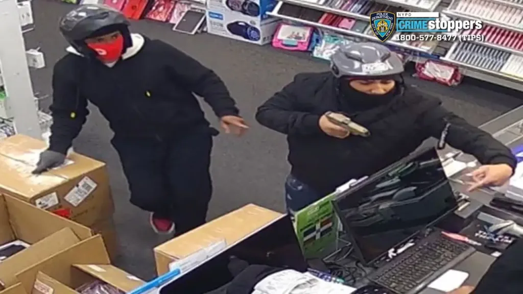 唐人日报11月11日讯:周五晚,两名戴头盔的劫匪在纽约皇后区阿斯托利亚一家手机店内实施抢劫,暴力殴打并向店员开枪。