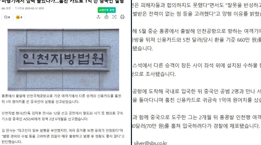 唐人日报2月13日讯:近日,52岁的中国籍男子A某因在从香港飞往仁川国际机场的航班上盗用乘客信用卡被判刑。去年5月,A某趁另一名中国乘客熟睡时,偷走其行李箱中的信用卡及5000美元。抵达仁川后,A某与两名中国同伙一起,使用偷来的信用卡购买了价值约1亿韩元的贵金属。