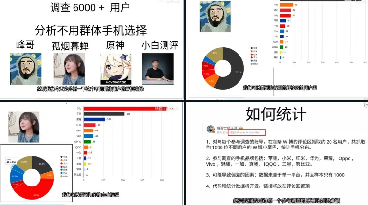 唐人日报2月4日讯:近日,B站一名UP主发布了关于微博大V粉丝手机型号的统计调查结果。数据显示,“峰哥亡命天涯”的粉丝中,使用苹果手机的占比最高,而“孤烟暮蝉”的粉丝中,则以华为手机用户居多。该调查反映了不同微博大V粉丝群体的手机品牌偏好,可能与各自受众群体的消费能力、品牌认同及社会文化背景密切相关。
