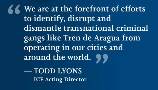 ICE联手多部门突袭!27名Tren De Aragua黑帮成员落网