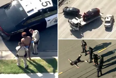 唐人日报4月10日讯:洛杉矶本周上演一场惊心动魄的追捕与枪击事件,最终导致知名摇滚乐队Weezer贝斯手Scott Shriner的妻子Jillian中枪被捕。事件起始于4月8日下午,一场文图拉高速上的三车相撞肇事逃逸,引发警方与嫌疑人的大规模追捕。